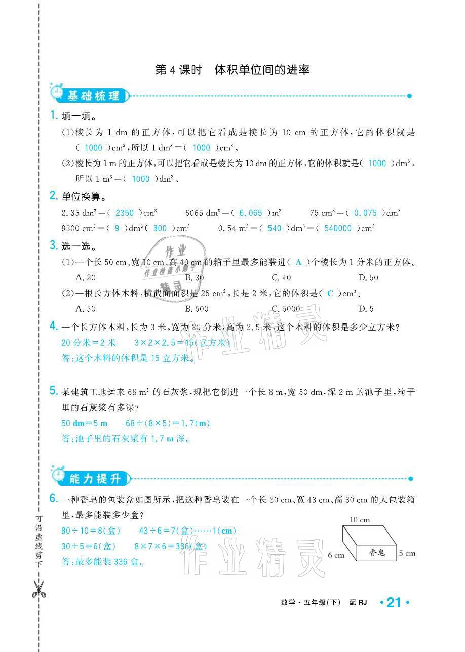 注:目前有些书本章节名称可能整理的还不是很完善,但都是按照顺序排列的,请同学们按照顺序仔细查找。练习册 2021年小学生1课3练培优作业本五年级数学下册人教版 答案主要是用来给同学们做完题方便对答案用的,请勿直接抄袭。