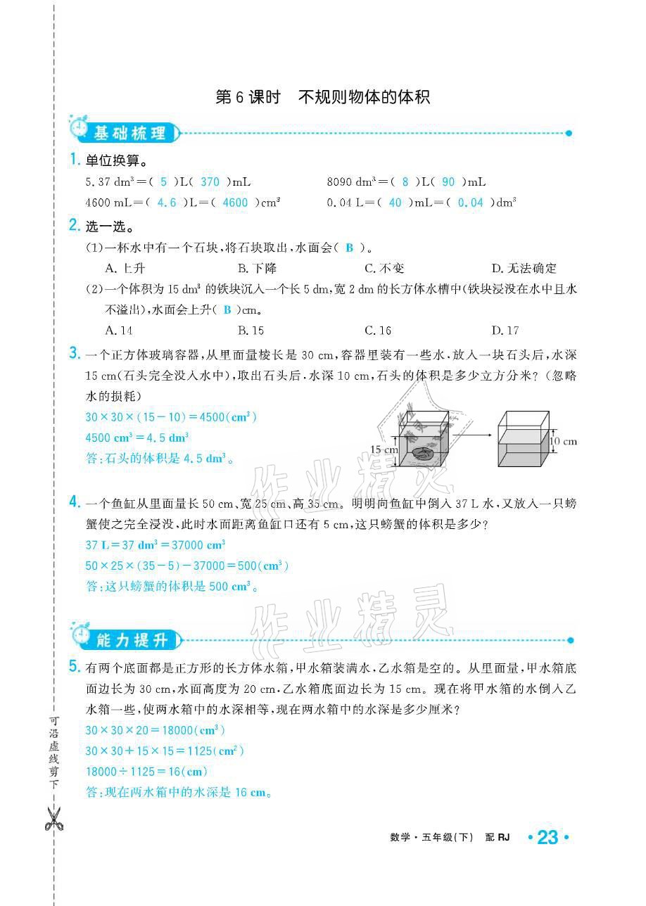 注:目前有些书本章节名称可能整理的还不是很完善,但都是按照顺序排列的,请同学们按照顺序仔细查找。练习册 2021年小学生1课3练培优作业本五年级数学下册人教版 答案主要是用来给同学们做完题方便对答案用的,请勿直接抄袭。
