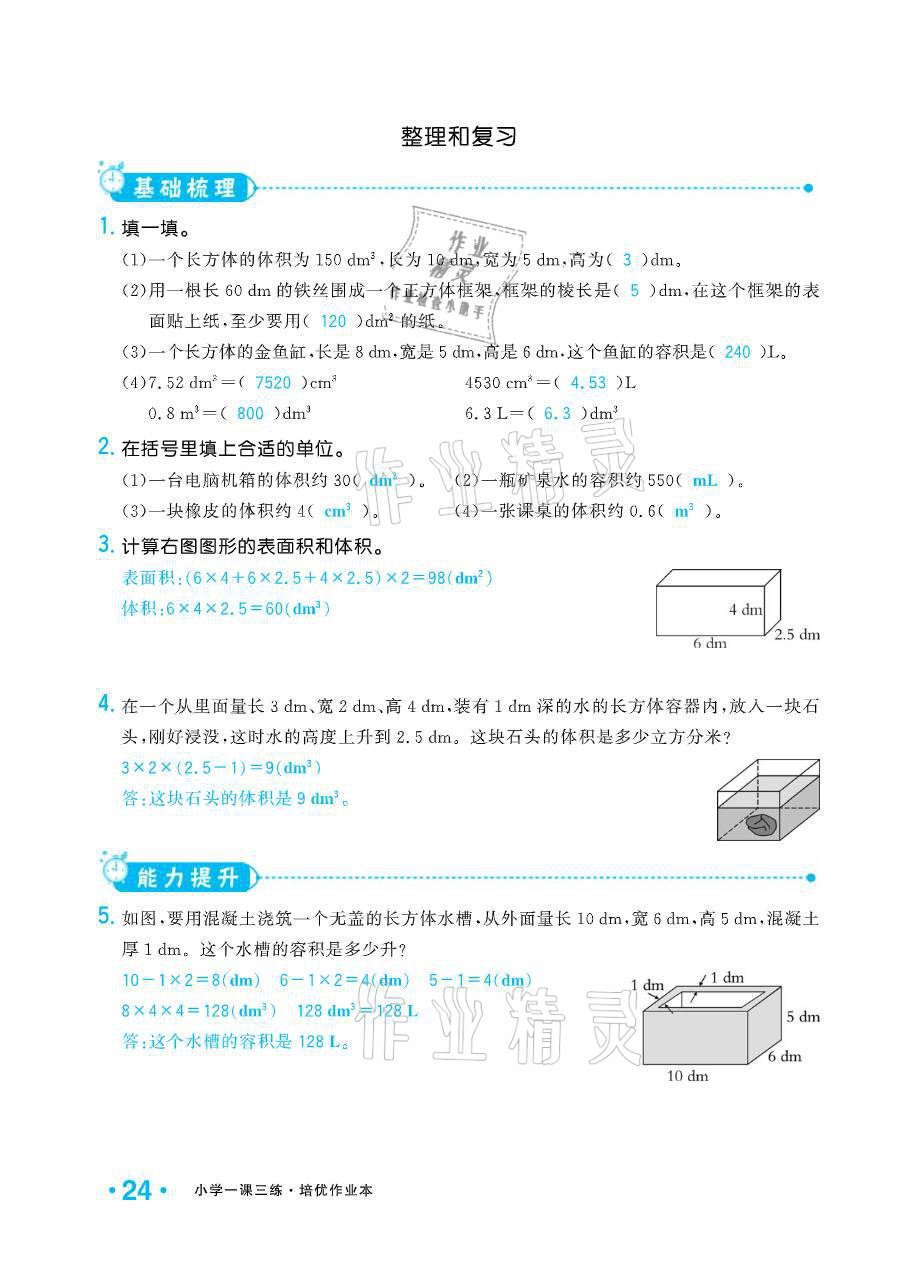 注:目前有些书本章节名称可能整理的还不是很完善,但都是按照顺序排列的,请同学们按照顺序仔细查找。练习册 2021年小学生1课3练培优作业本五年级数学下册人教版 答案主要是用来给同学们做完题方便对答案用的,请勿直接抄袭。