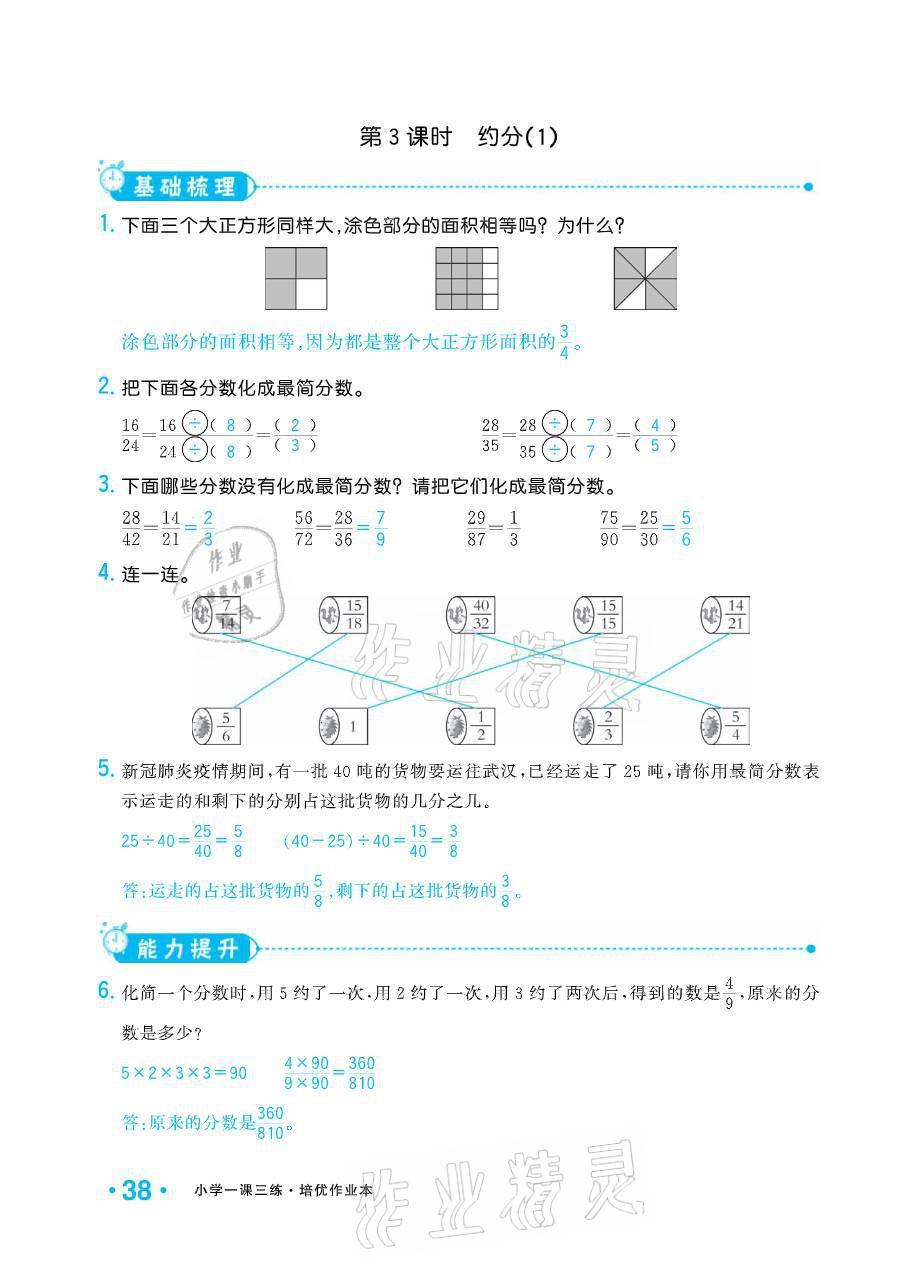 注:目前有些书本章节名称可能整理的还不是很完善,但都是按照顺序排列的,请同学们按照顺序仔细查找。练习册 2021年小学生1课3练培优作业本五年级数学下册人教版 答案主要是用来给同学们做完题方便对答案用的,请勿直接抄袭。