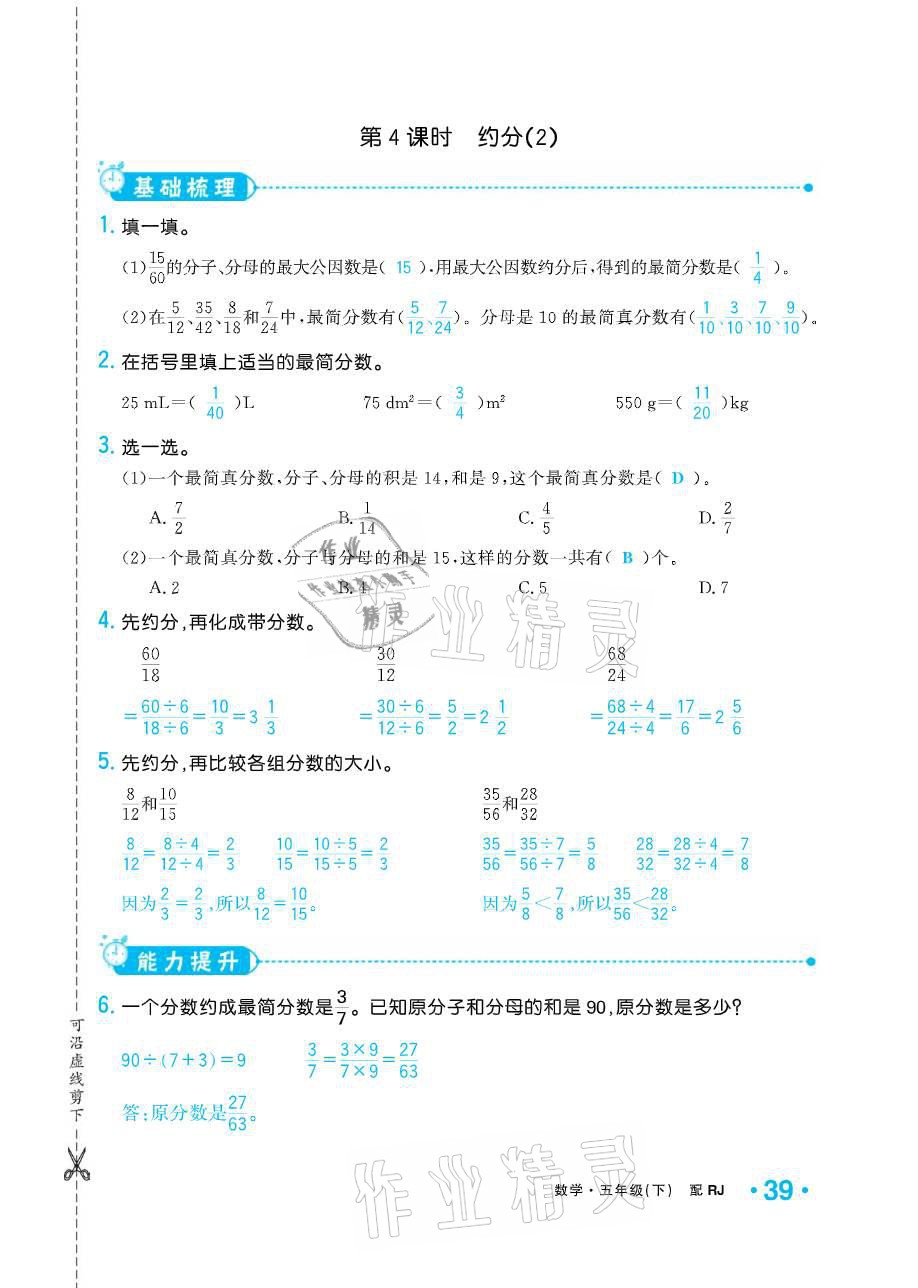 注:目前有些书本章节名称可能整理的还不是很完善,但都是按照顺序排列的,请同学们按照顺序仔细查找。练习册 2021年小学生1课3练培优作业本五年级数学下册人教版 答案主要是用来给同学们做完题方便对答案用的,请勿直接抄袭。