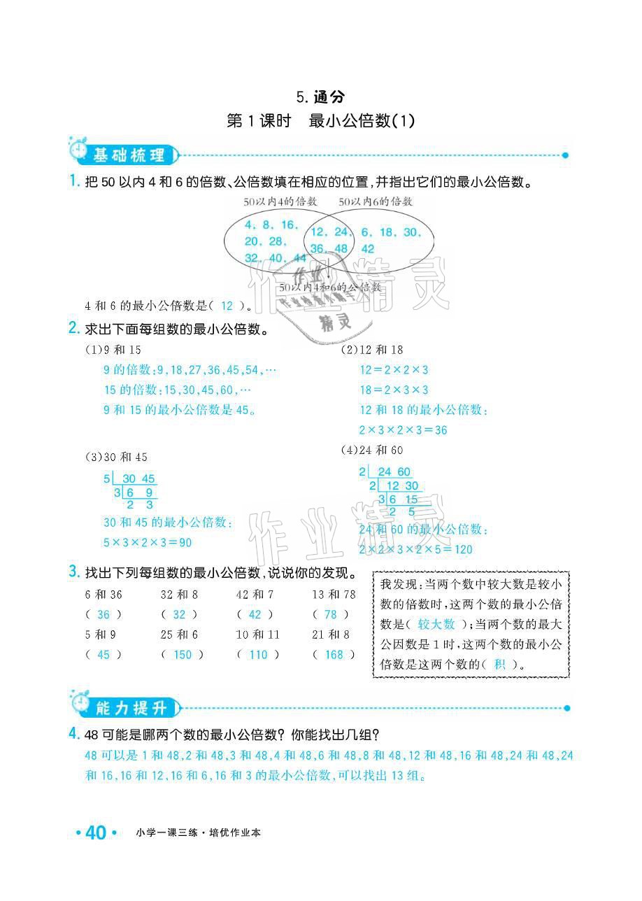 注:目前有些书本章节名称可能整理的还不是很完善,但都是按照顺序排列的,请同学们按照顺序仔细查找。练习册 2021年小学生1课3练培优作业本五年级数学下册人教版 答案主要是用来给同学们做完题方便对答案用的,请勿直接抄袭。
