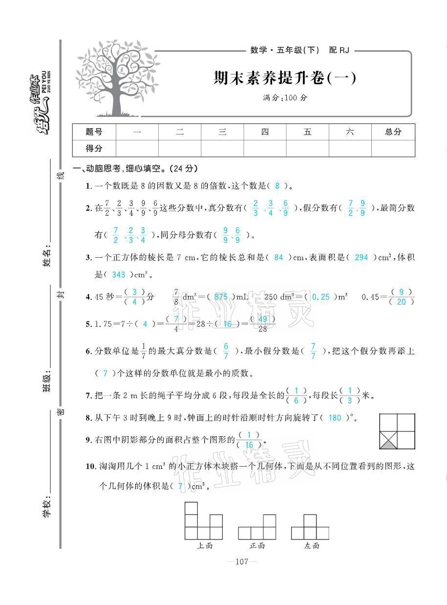 注:目前有些书本章节名称可能整理的还不是很完善,但都是按照顺序排列的,请同学们按照顺序仔细查找。练习册 2021年小学生1课3练培优作业本五年级数学下册人教版 答案主要是用来给同学们做完题方便对答案用的,请勿直接抄袭。