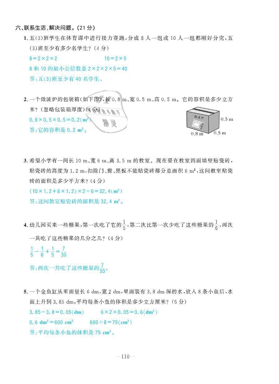注:目前有些书本章节名称可能整理的还不是很完善,但都是按照顺序排列的,请同学们按照顺序仔细查找。练习册 2021年小学生1课3练培优作业本五年级数学下册人教版 答案主要是用来给同学们做完题方便对答案用的,请勿直接抄袭。