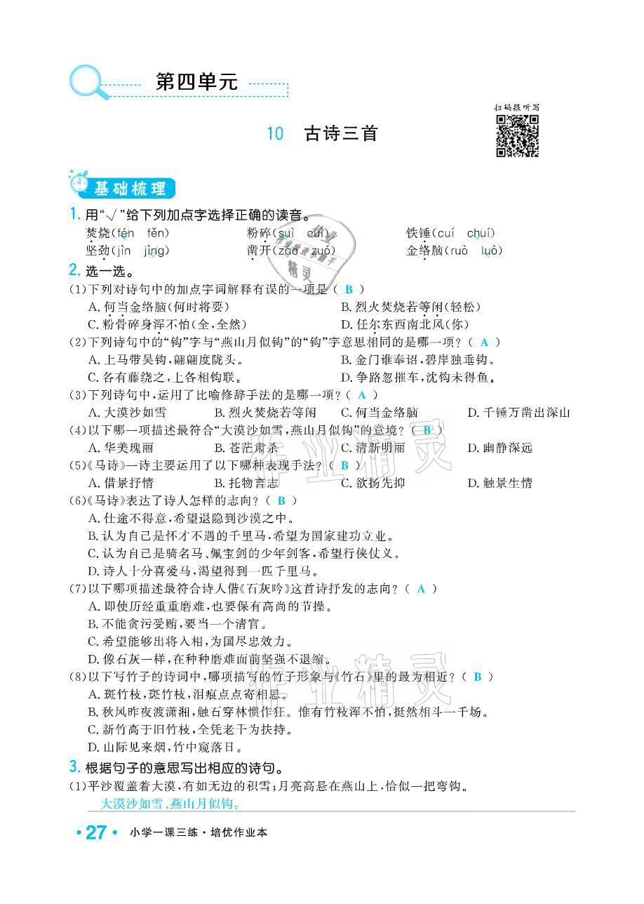 注:目前有些书本章节名称可能整理的还不是很完善,但都是按照顺序排列的,请同学们按照顺序仔细查找。练习册 2021年小学1课3练培优作业本六年级语文下册人教版 答案主要是用来给同学们做完题方便对答案用的,请勿直接抄袭。