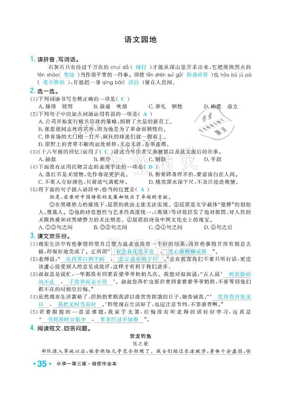 注:目前有些书本章节名称可能整理的还不是很完善,但都是按照顺序排列的,请同学们按照顺序仔细查找。练习册 2021年小学1课3练培优作业本六年级语文下册人教版 答案主要是用来给同学们做完题方便对答案用的,请勿直接抄袭。