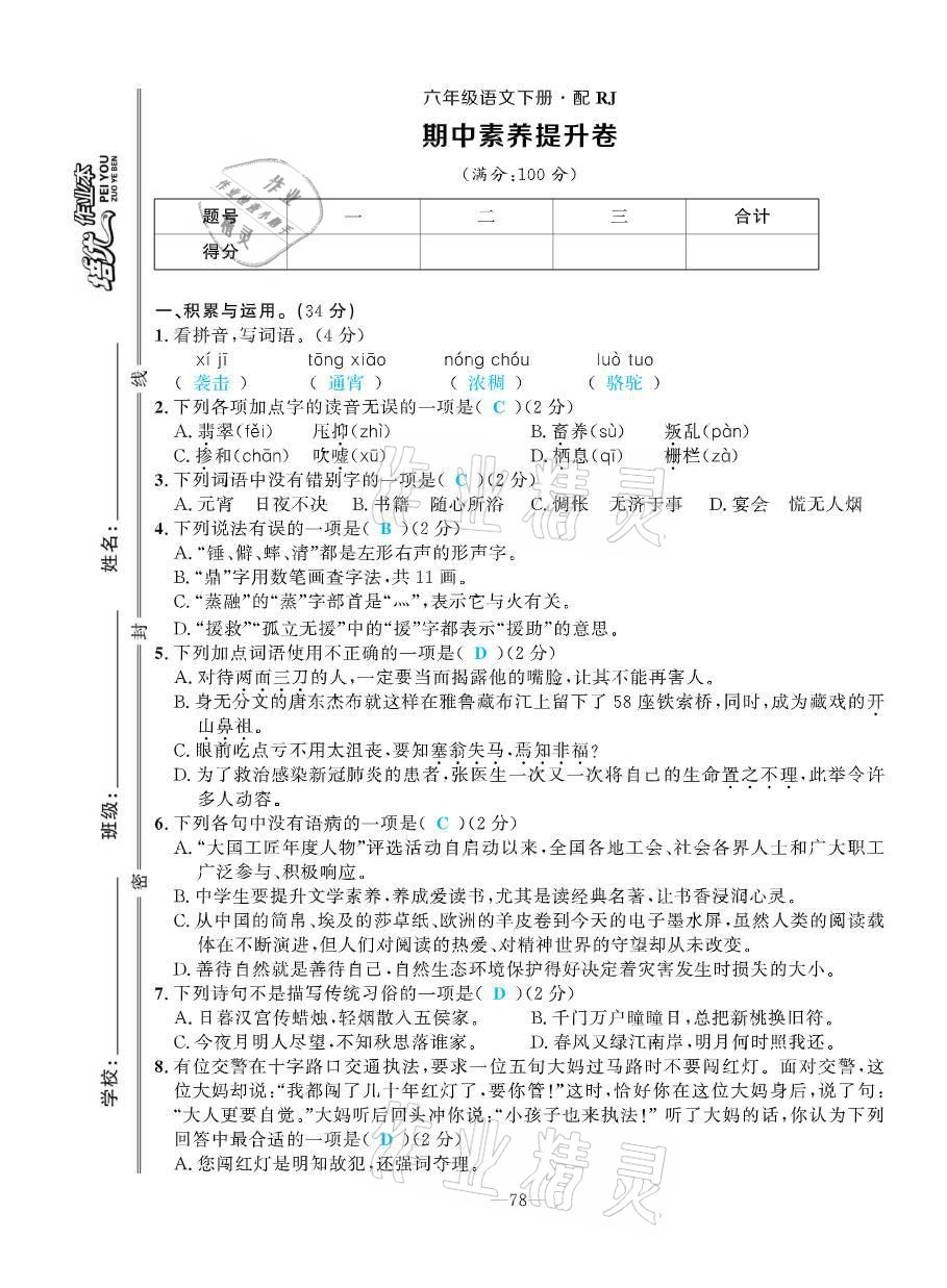 注:目前有些书本章节名称可能整理的还不是很完善,但都是按照顺序排列的,请同学们按照顺序仔细查找。练习册 2021年小学1课3练培优作业本六年级语文下册人教版 答案主要是用来给同学们做完题方便对答案用的,请勿直接抄袭。