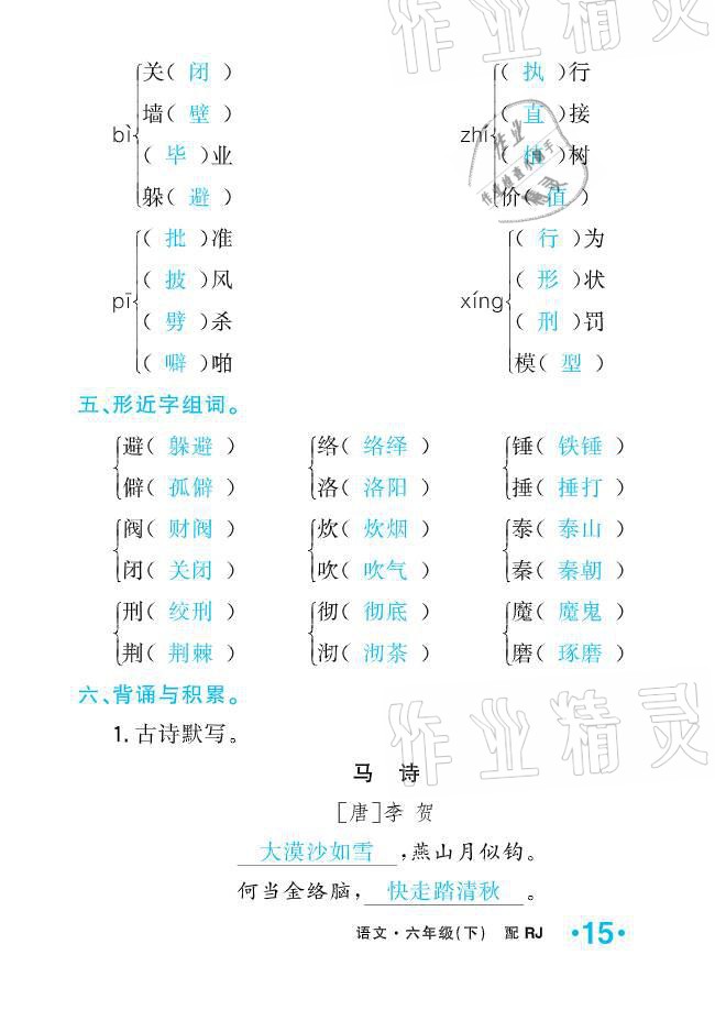 注:目前有些书本章节名称可能整理的还不是很完善,但都是按照顺序排列的,请同学们按照顺序仔细查找。练习册 2021年小学1课3练培优作业本六年级语文下册人教版 答案主要是用来给同学们做完题方便对答案用的,请勿直接抄袭。