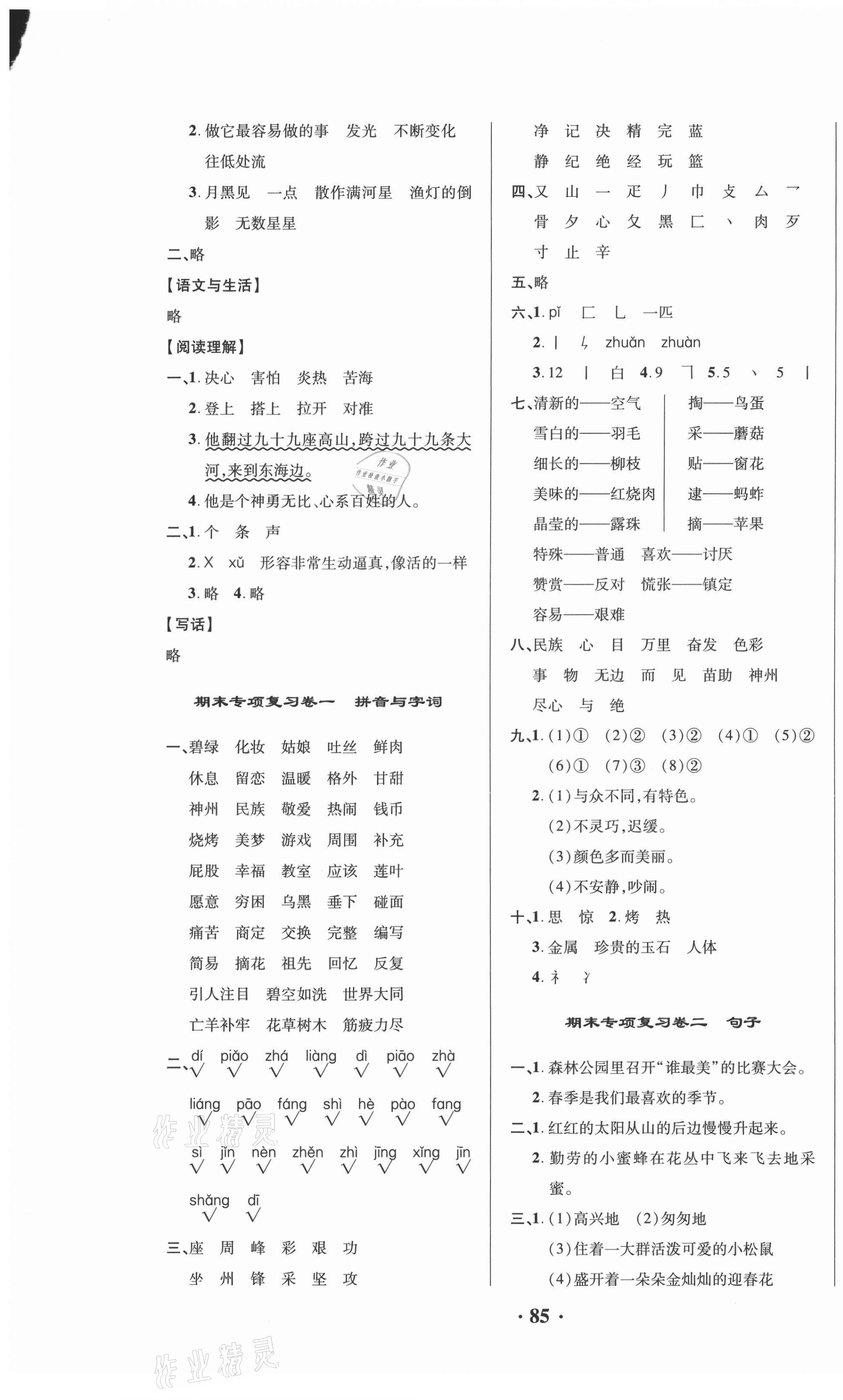 注:目前有些书本章节名称可能整理的还不是很完善,但都是按照顺序排列的,请同学们按照顺序仔细查找。练习册 2021年云南一线名师精编期末提分卷二年级语文下册人教版 答案主要是用来给同学们做完题方便对答案用的,请勿直接抄袭。