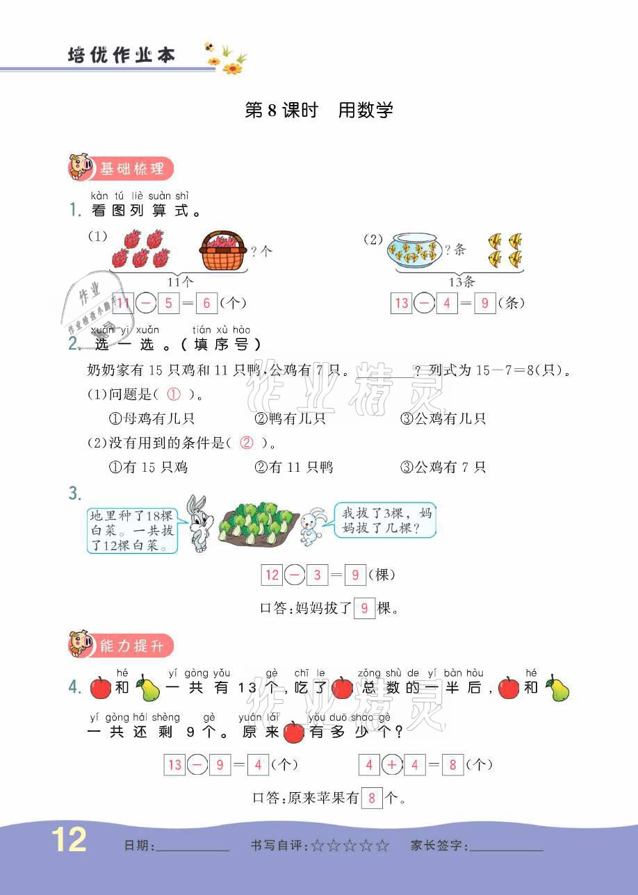 注:目前有些书本章节名称可能整理的还不是很完善,但都是按照顺序排列的,请同学们按照顺序仔细查找。练习册 2021年小学生1课3练培优作业本一年级数学下册人教版 答案主要是用来给同学们做完题方便对答案用的,请勿直接抄袭。
