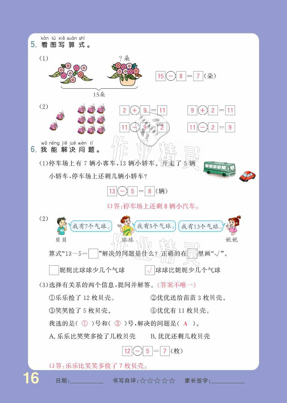 注:目前有些书本章节名称可能整理的还不是很完善,但都是按照顺序排列的,请同学们按照顺序仔细查找。练习册 2021年小学生1课3练培优作业本一年级数学下册人教版 答案主要是用来给同学们做完题方便对答案用的,请勿直接抄袭。