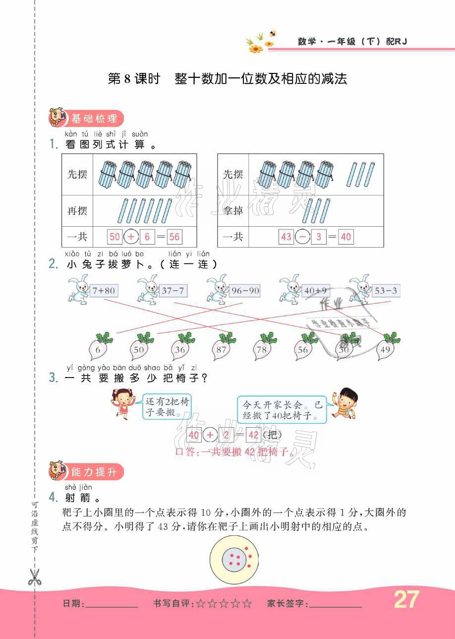 2021年小学生1课3练培优作业本一年级数学下册人教版