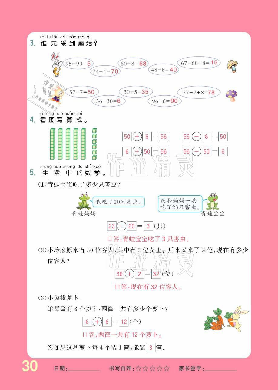 注:目前有些书本章节名称可能整理的还不是很完善,但都是按照顺序排列的,请同学们按照顺序仔细查找。练习册 2021年小学生1课3练培优作业本一年级数学下册人教版 答案主要是用来给同学们做完题方便对答案用的,请勿直接抄袭。