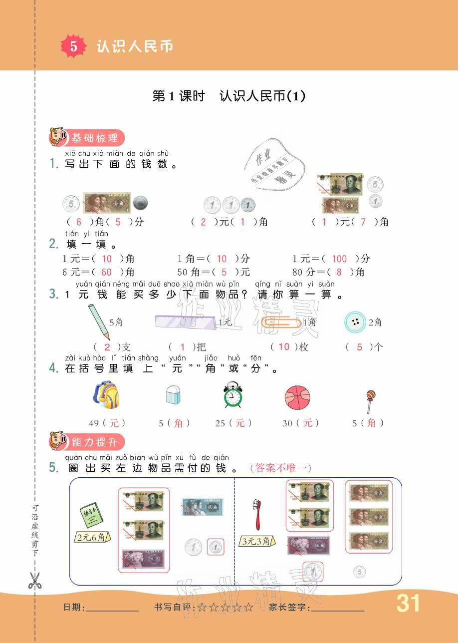 注:目前有些书本章节名称可能整理的还不是很完善,但都是按照顺序排列的,请同学们按照顺序仔细查找。练习册 2021年小学生1课3练培优作业本一年级数学下册人教版 答案主要是用来给同学们做完题方便对答案用的,请勿直接抄袭。