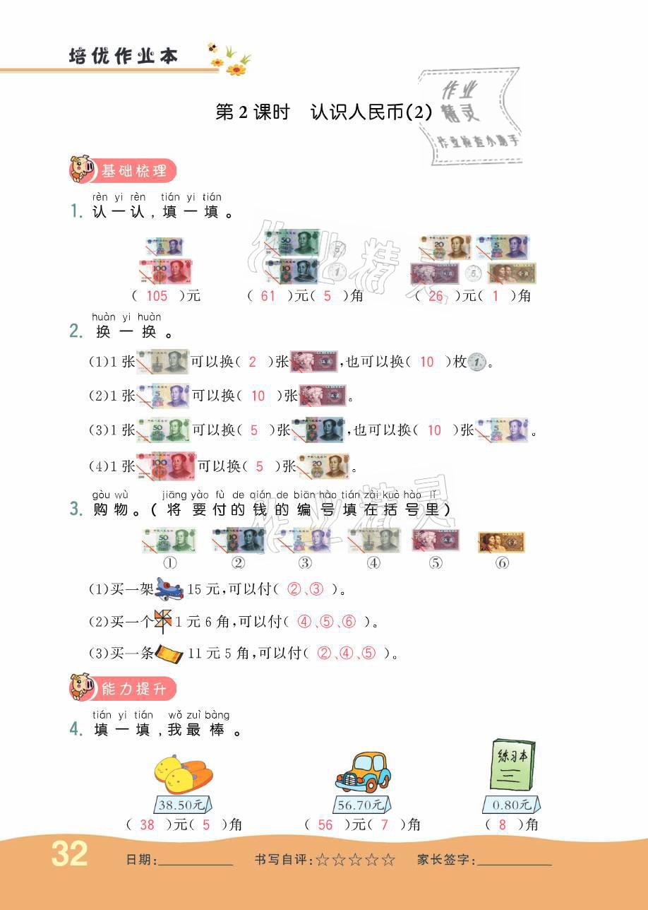 注:目前有些书本章节名称可能整理的还不是很完善,但都是按照顺序排列的,请同学们按照顺序仔细查找。练习册 2021年小学生1课3练培优作业本一年级数学下册人教版 答案主要是用来给同学们做完题方便对答案用的,请勿直接抄袭。