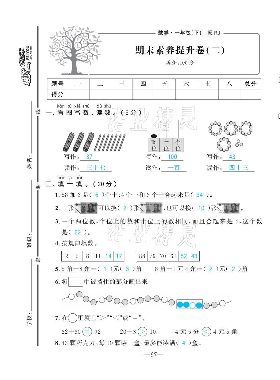 注:目前有些书本章节名称可能整理的还不是很完善,但都是按照顺序排列的,请同学们按照顺序仔细查找。练习册 2021年小学生1课3练培优作业本一年级数学下册人教版 答案主要是用来给同学们做完题方便对答案用的,请勿直接抄袭。