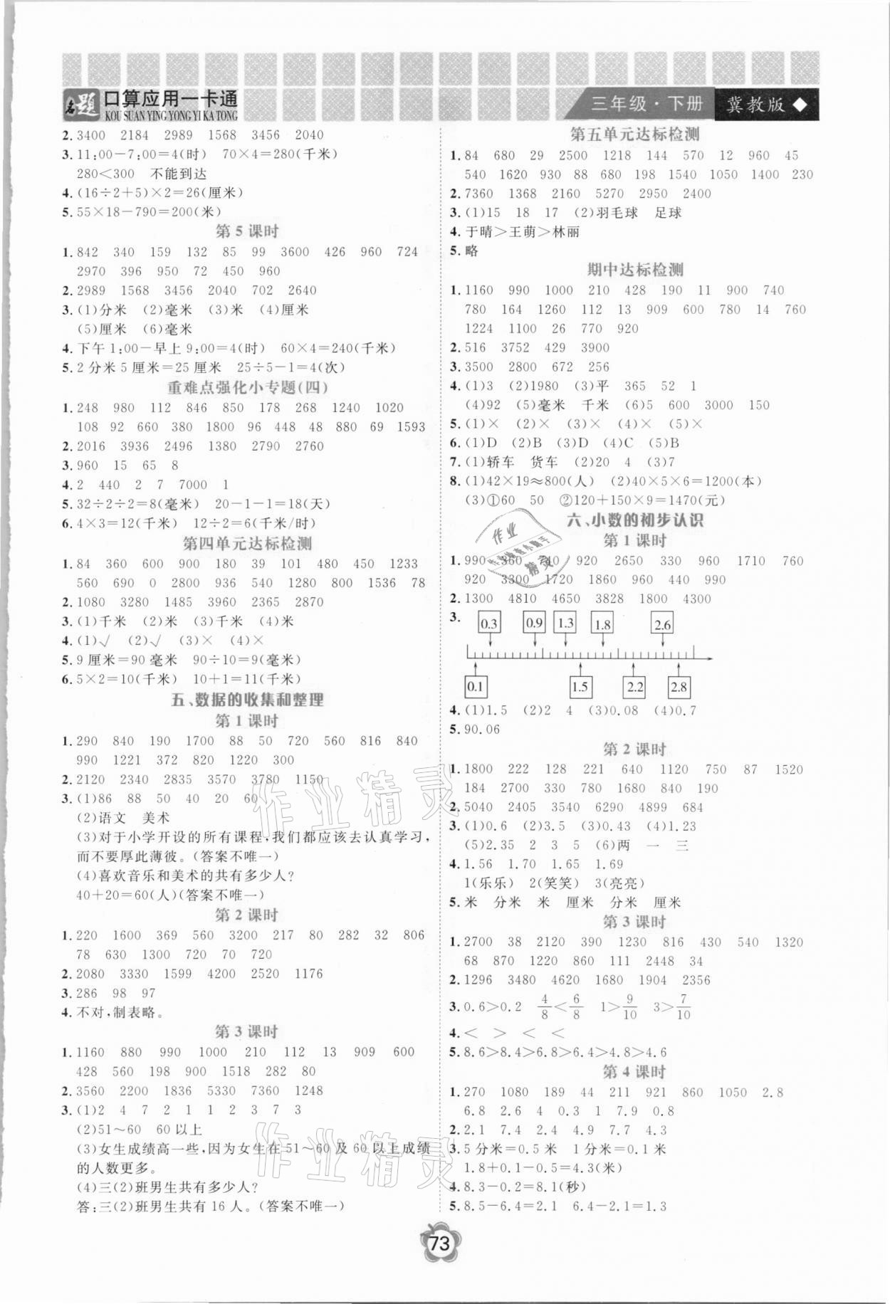 《2021年名题1加1口算应用一卡通三年级下册冀教版》