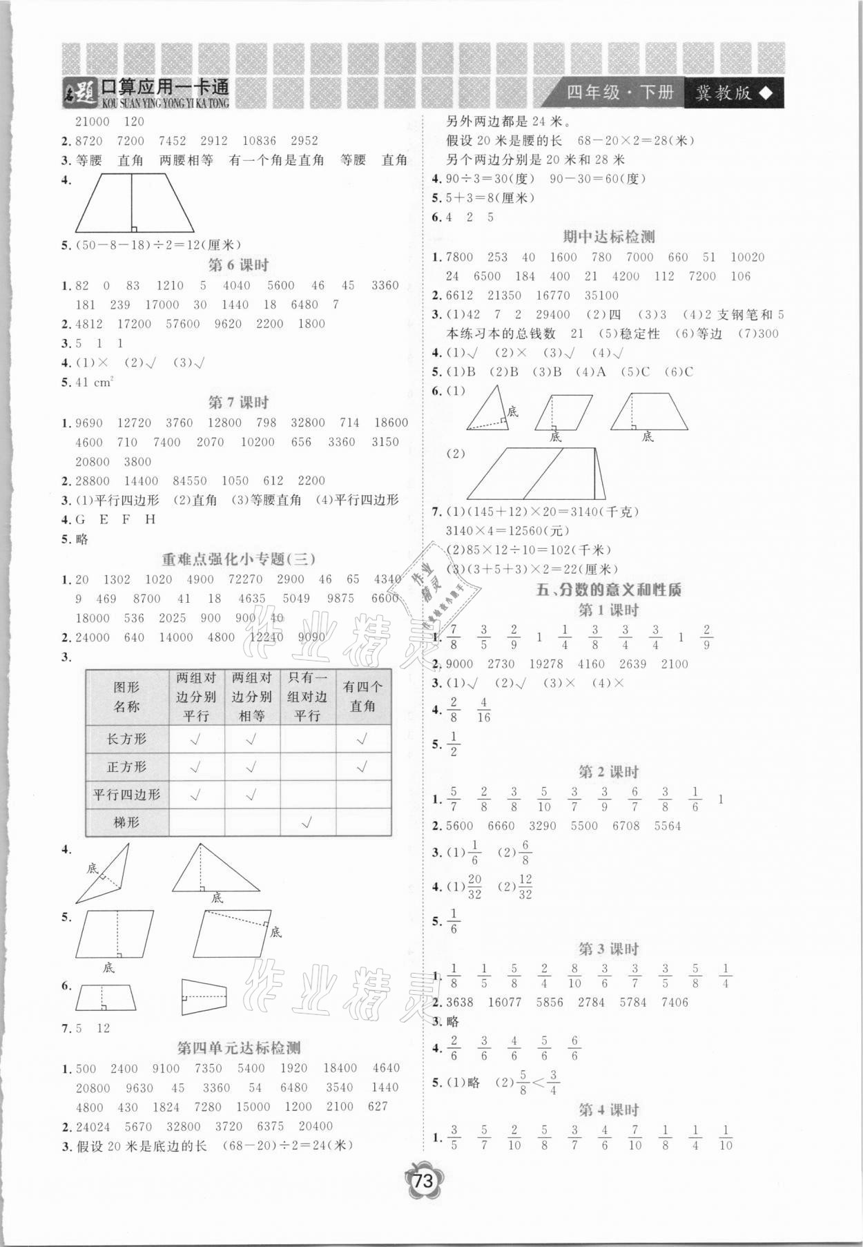 2021年名题1加1口算应用一卡通四年级下册冀教版