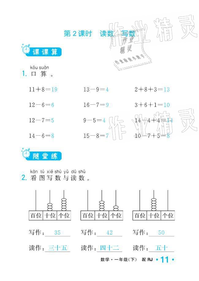 注:目前有些书本章节名称可能整理的还不是很完善,但都是按照顺序排列的,请同学们按照顺序仔细查找。练习册 2021年小学生1课3练培优作业本一年级数学下册人教版 答案主要是用来给同学们做完题方便对答案用的,请勿直接抄袭。