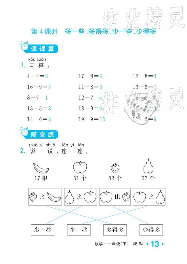 注:目前有些书本章节名称可能整理的还不是很完善,但都是按照顺序排列的,请同学们按照顺序仔细查找。练习册 2021年小学生1课3练培优作业本一年级数学下册人教版 答案主要是用来给同学们做完题方便对答案用的,请勿直接抄袭。