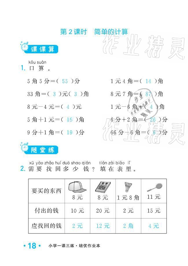 注:目前有些书本章节名称可能整理的还不是很完善,但都是按照顺序排列的,请同学们按照顺序仔细查找。练习册 2021年小学生1课3练培优作业本一年级数学下册人教版 答案主要是用来给同学们做完题方便对答案用的,请勿直接抄袭。