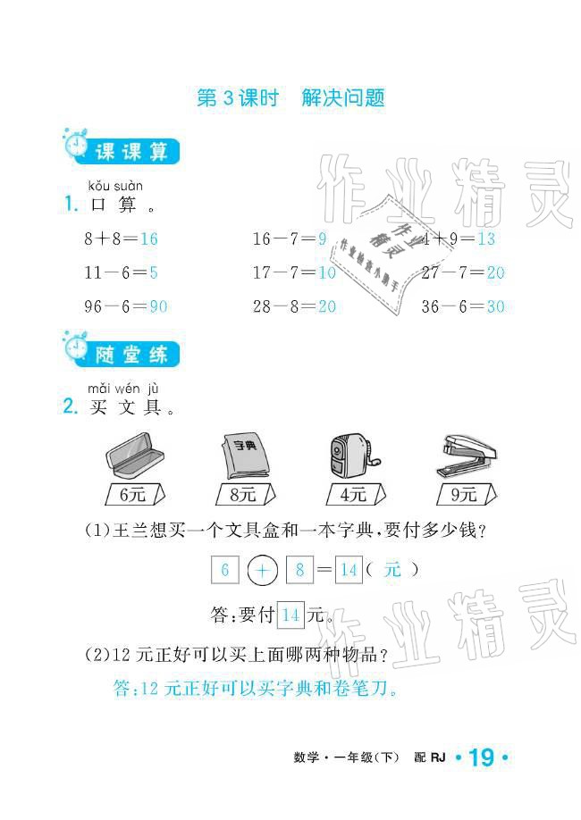 注:目前有些书本章节名称可能整理的还不是很完善,但都是按照顺序排列的,请同学们按照顺序仔细查找。练习册 2021年小学生1课3练培优作业本一年级数学下册人教版 答案主要是用来给同学们做完题方便对答案用的,请勿直接抄袭。
