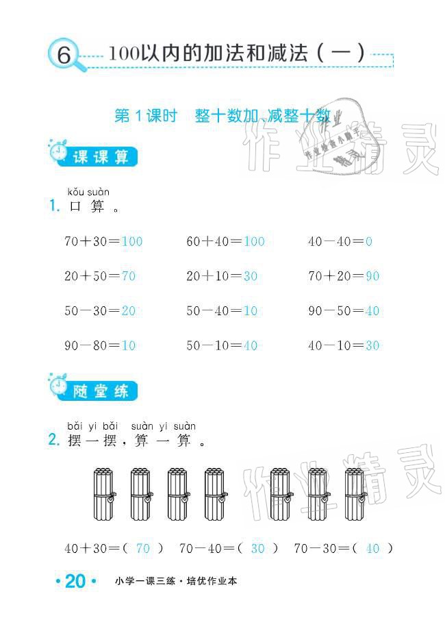 注:目前有些书本章节名称可能整理的还不是很完善,但都是按照顺序排列的,请同学们按照顺序仔细查找。练习册 2021年小学生1课3练培优作业本一年级数学下册人教版 答案主要是用来给同学们做完题方便对答案用的,请勿直接抄袭。