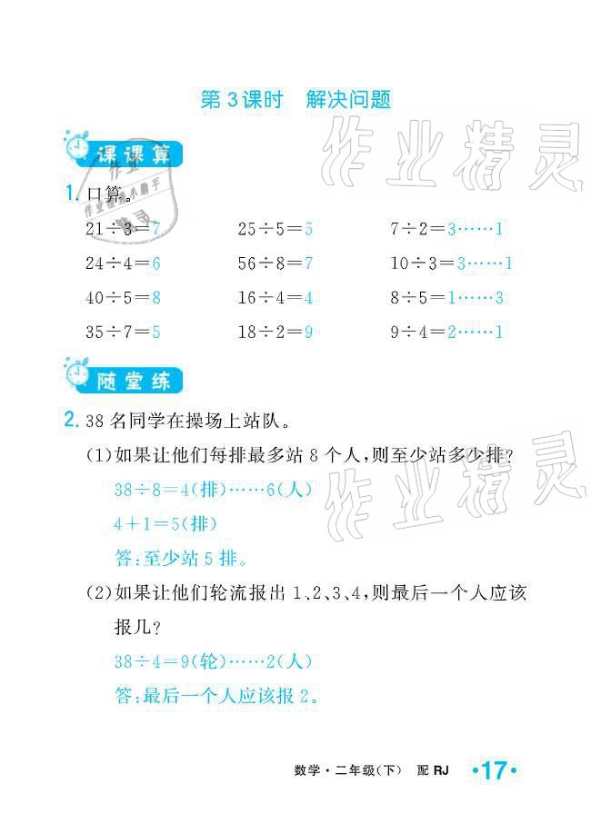 注:目前有些书本章节名称可能整理的还不是很完善,但都是按照顺序排列的,请同学们按照顺序仔细查找。练习册 2021年小学生1课3练培优作业本二年级数学下册人教版 答案主要是用来给同学们做完题方便对答案用的,请勿直接抄袭。