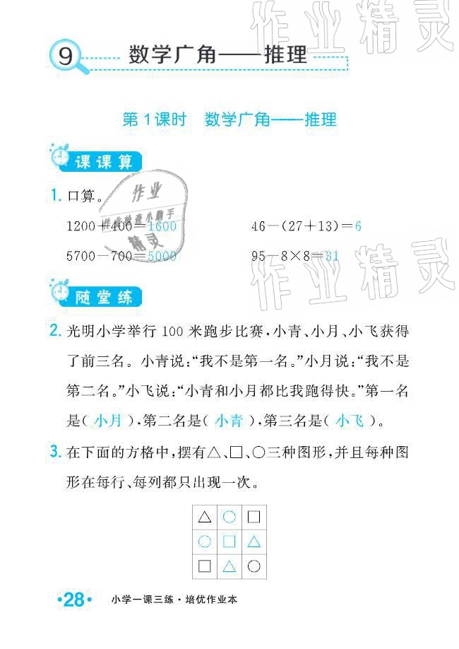 注:目前有些书本章节名称可能整理的还不是很完善,但都是按照顺序排列的,请同学们按照顺序仔细查找。练习册 2021年小学生1课3练培优作业本二年级数学下册人教版 答案主要是用来给同学们做完题方便对答案用的,请勿直接抄袭。