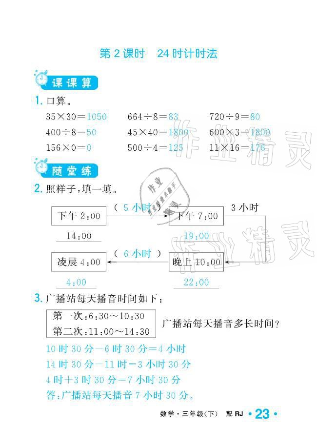 2021年小学生1课3练培优作业本三年级数学下册人教版