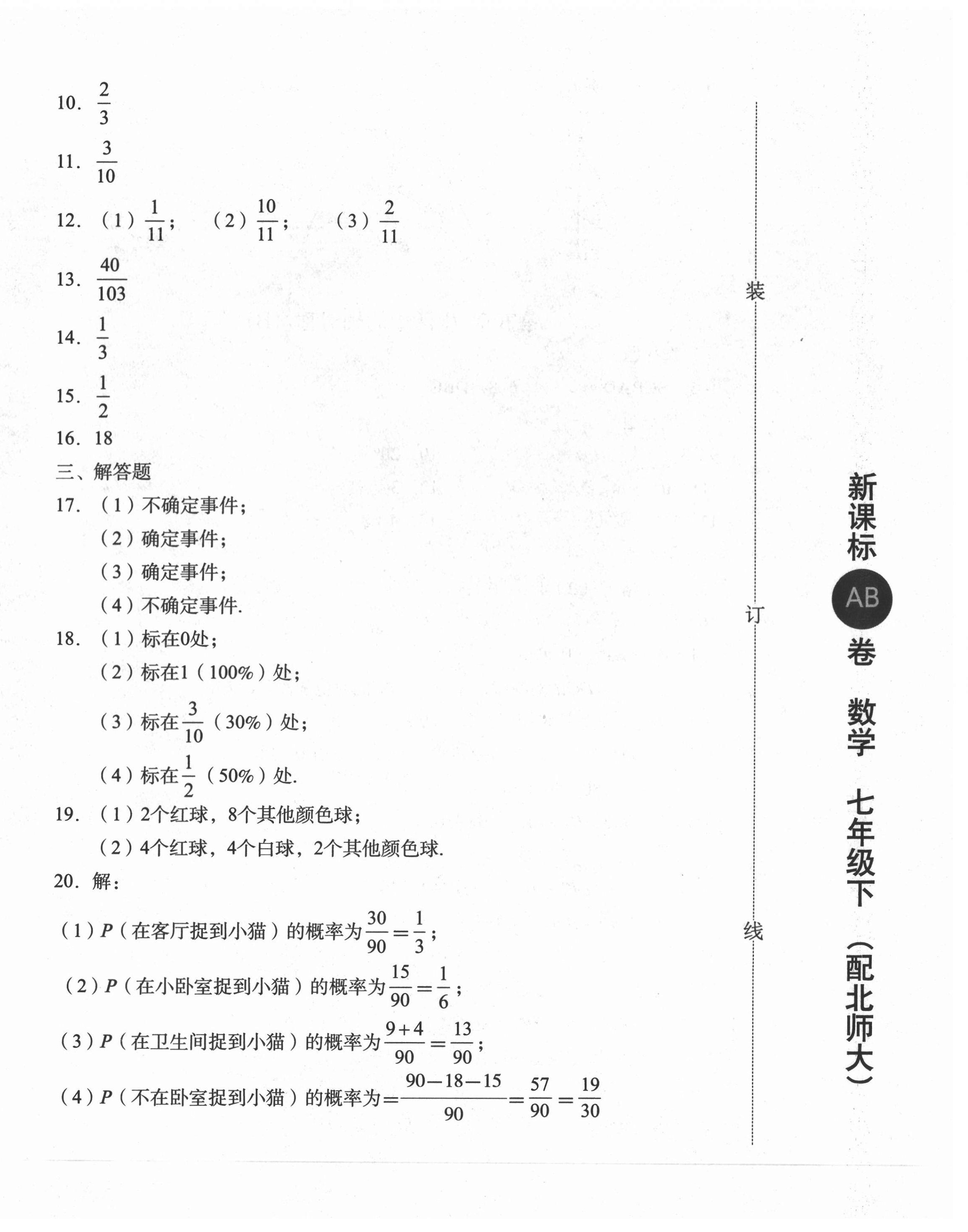 注:目前有些书本章节名称可能整理的还不是很完善,但都是按照顺序排列的,请同学们按照顺序仔细查找。练习册 2021年新课标AB卷单元测试七年级数学下册北师大版 答案主要是用来给同学们做完题方便对答案用的,请勿直接抄袭。