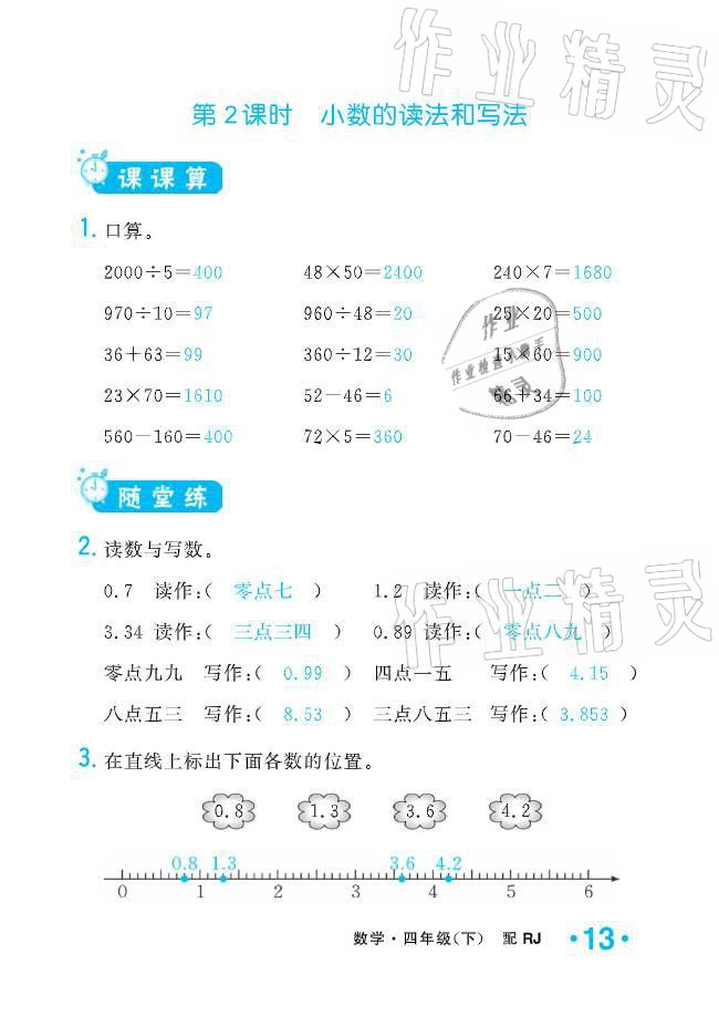 注:目前有些书本章节名称可能整理的还不是很完善,但都是按照顺序排列的,请同学们按照顺序仔细查找。练习册 2021年小学生1课3练培优作业本四年级数学下册人教版 答案主要是用来给同学们做完题方便对答案用的,请勿直接抄袭。