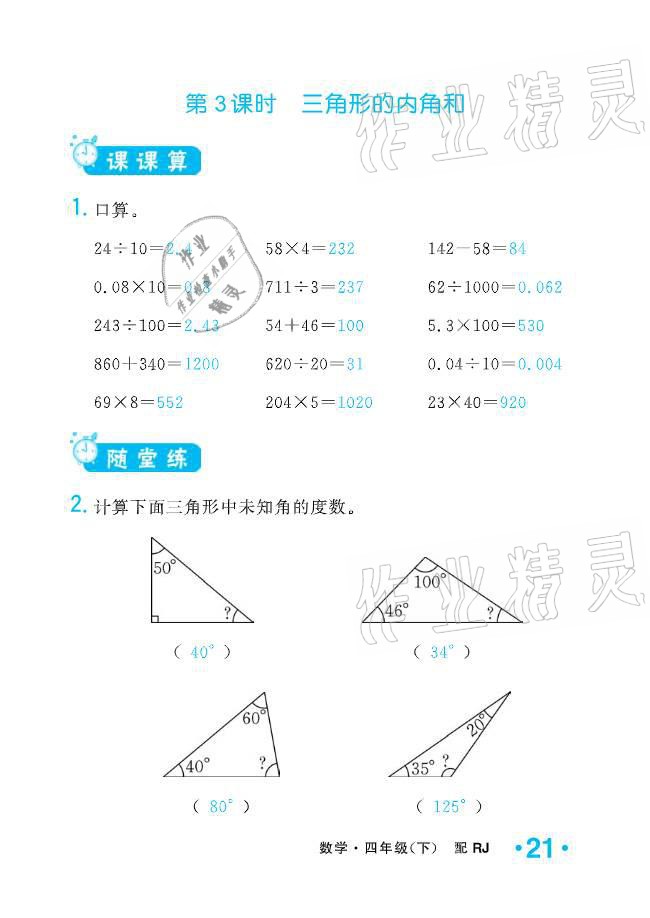注:目前有些书本章节名称可能整理的还不是很完善,但都是按照顺序排列的,请同学们按照顺序仔细查找。练习册 2021年小学生1课3练培优作业本四年级数学下册人教版 答案主要是用来给同学们做完题方便对答案用的,请勿直接抄袭。