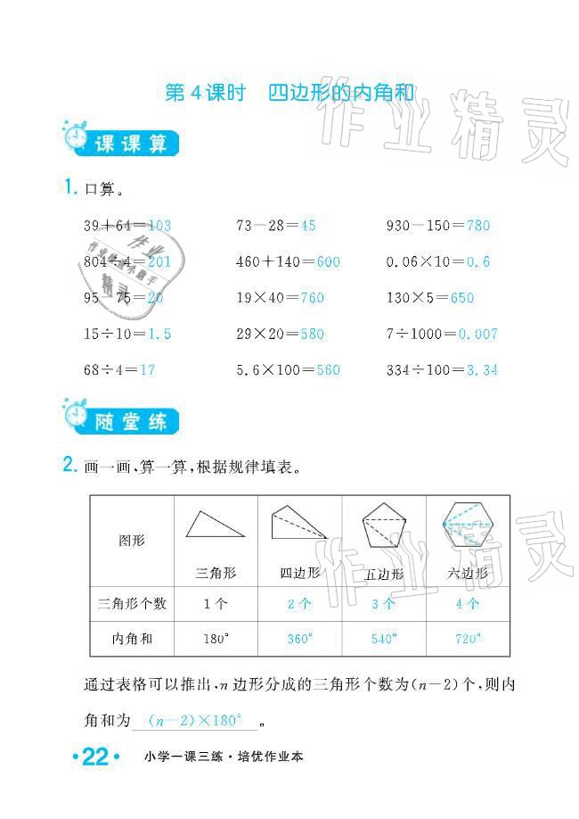 注:目前有些书本章节名称可能整理的还不是很完善,但都是按照顺序排列的,请同学们按照顺序仔细查找。练习册 2021年小学生1课3练培优作业本四年级数学下册人教版 答案主要是用来给同学们做完题方便对答案用的,请勿直接抄袭。