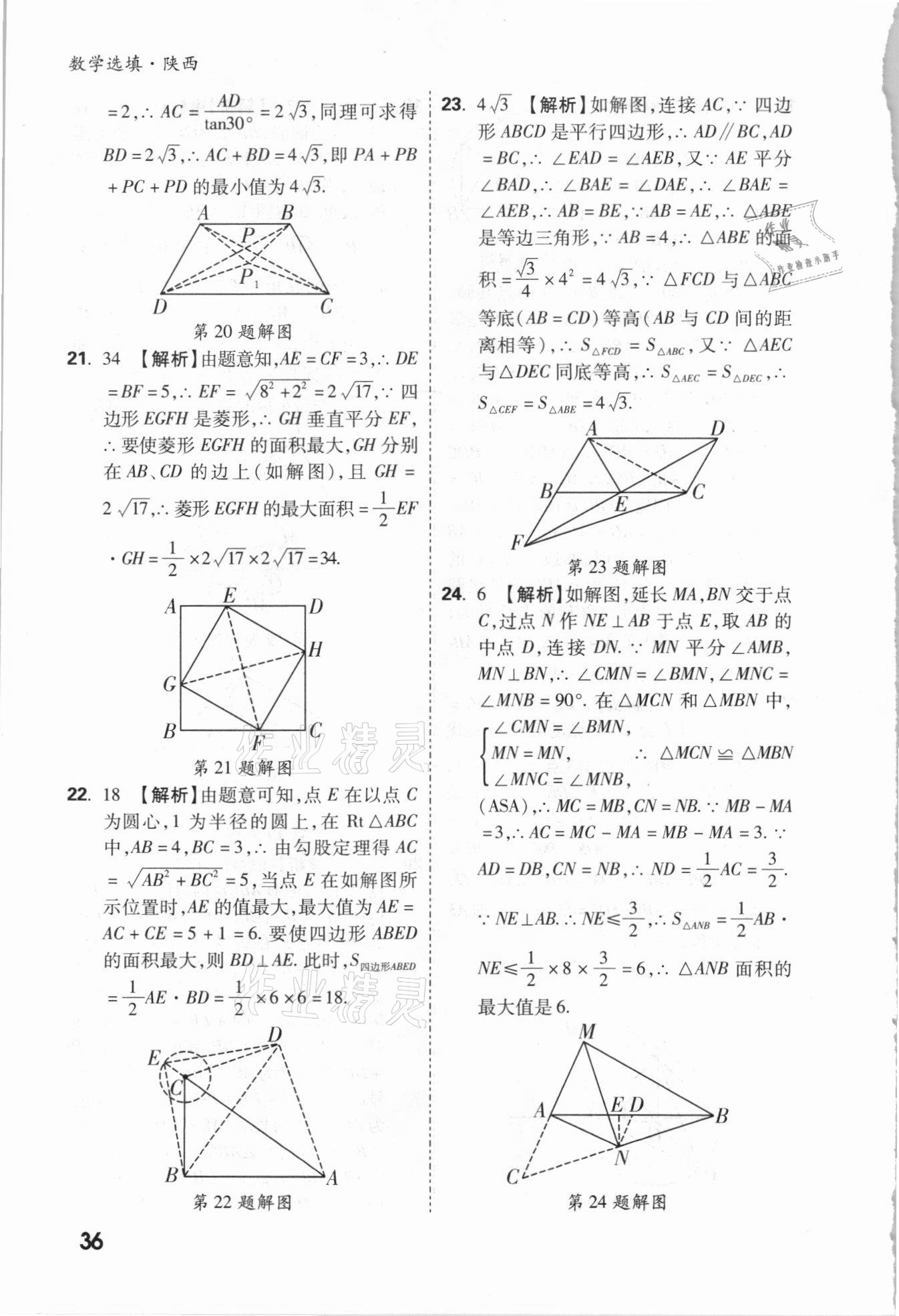 注:目前有些书本章节名称可能整理的还不是很完善,但都是按照顺序排列的,请同学们按照顺序仔细查找。练习册 2021年万唯中考数学选填专项集训陕西专版 答案主要是用来给同学们做完题方便对答案用的,请勿直接抄袭。