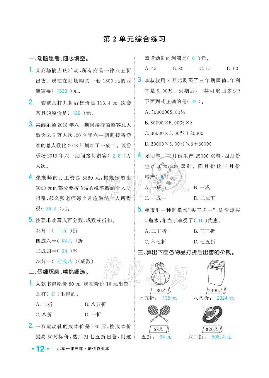 注:目前有些书本章节名称可能整理的还不是很完善,但都是按照顺序排列的,请同学们按照顺序仔细查找。练习册 2021年小学生1课3练培优作业本六年级数学下册人教版 答案主要是用来给同学们做完题方便对答案用的,请勿直接抄袭。