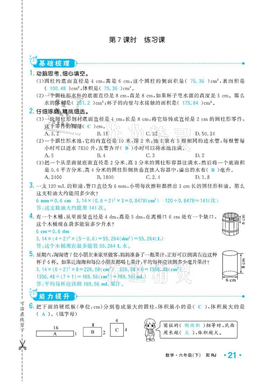 注:目前有些书本章节名称可能整理的还不是很完善,但都是按照顺序排列的,请同学们按照顺序仔细查找。练习册 2021年小学生1课3练培优作业本六年级数学下册人教版 答案主要是用来给同学们做完题方便对答案用的,请勿直接抄袭。