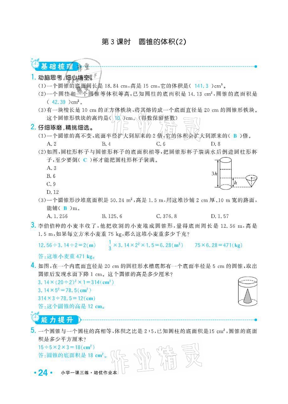 注:目前有些书本章节名称可能整理的还不是很完善,但都是按照顺序排列的,请同学们按照顺序仔细查找。练习册 2021年小学生1课3练培优作业本六年级数学下册人教版 答案主要是用来给同学们做完题方便对答案用的,请勿直接抄袭。