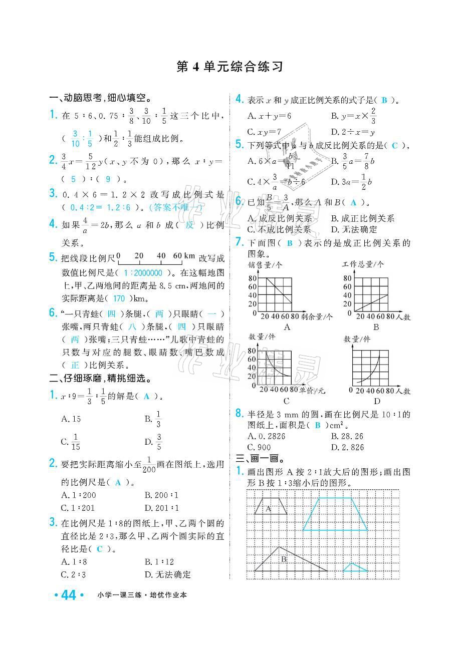注:目前有些书本章节名称可能整理的还不是很完善,但都是按照顺序排列的,请同学们按照顺序仔细查找。练习册 2021年小学生1课3练培优作业本六年级数学下册人教版 答案主要是用来给同学们做完题方便对答案用的,请勿直接抄袭。
