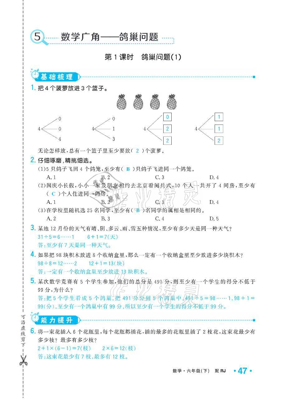 注:目前有些书本章节名称可能整理的还不是很完善,但都是按照顺序排列的,请同学们按照顺序仔细查找。练习册 2021年小学生1课3练培优作业本六年级数学下册人教版 答案主要是用来给同学们做完题方便对答案用的,请勿直接抄袭。