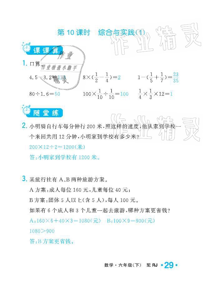 注:目前有些书本章节名称可能整理的还不是很完善,但都是按照顺序排列的,请同学们按照顺序仔细查找。练习册 2021年小学生1课3练培优作业本六年级数学下册人教版 答案主要是用来给同学们做完题方便对答案用的,请勿直接抄袭。
