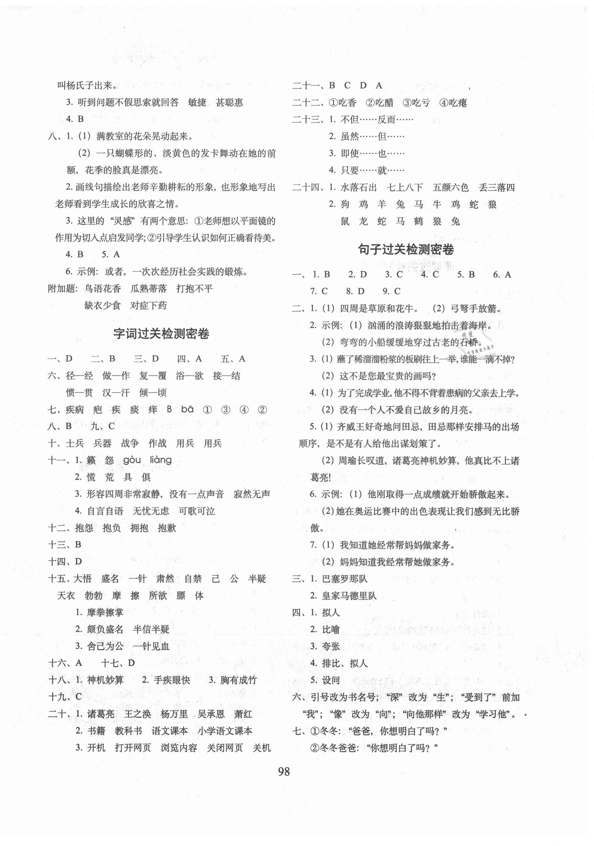 注:目前有些书本章节名称可能整理的还不是很完善,但都是按照顺序排列的,请同学们按照顺序仔细查找。练习册 2021年期末冲刺100分完全试卷五年级语文下册人教版广东专版 答案主要是用来给同学们做完题方便对答案用的,请勿直接抄袭。