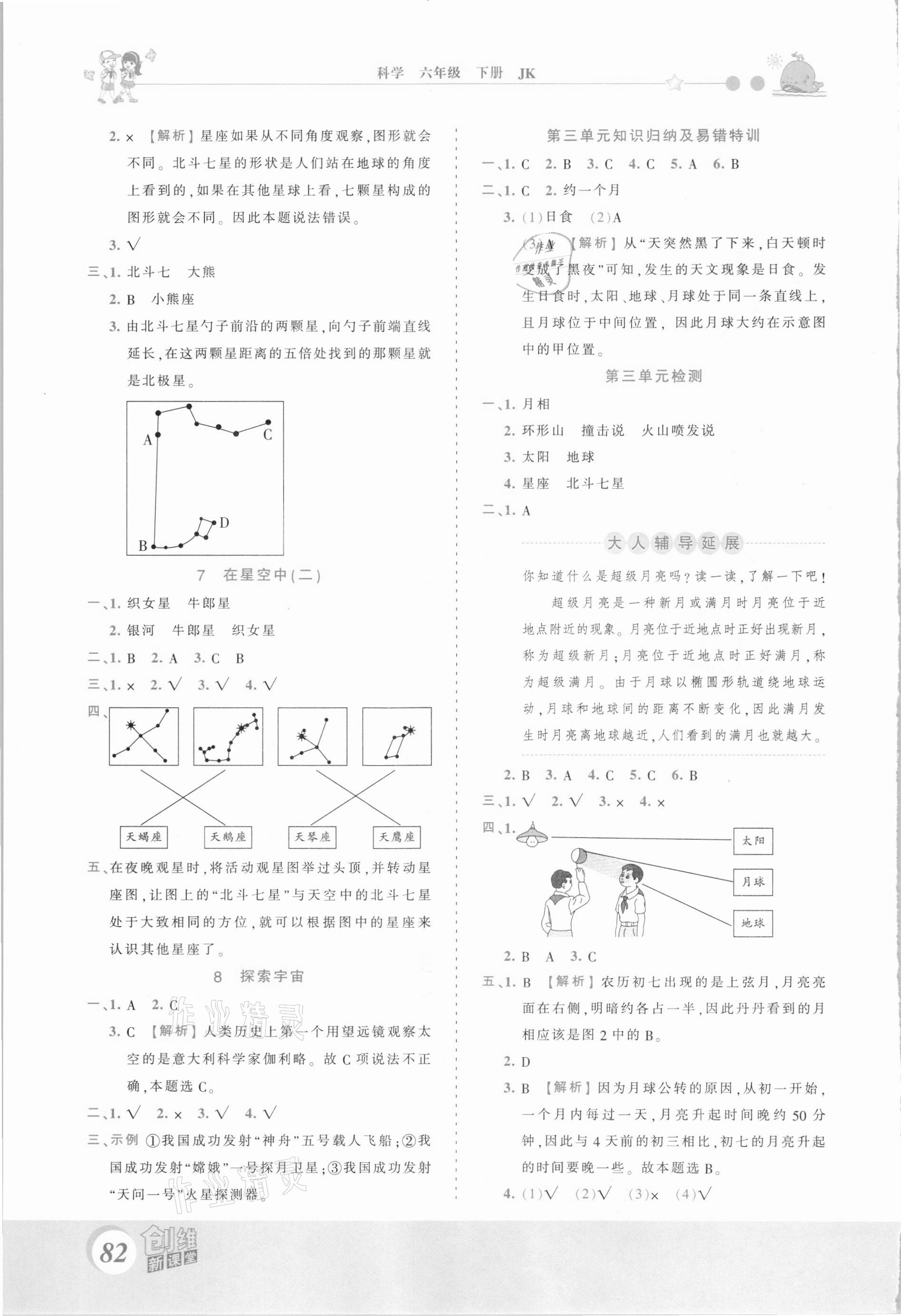 注:目前有些书本章节名称可能整理的还不是很完善,但都是按照顺序排列的,请同学们按照顺序仔细查找。练习册 2021年创维新课堂六年级科学下册教科版 答案主要是用来给同学们做完题方便对答案用的,请勿直接抄袭。