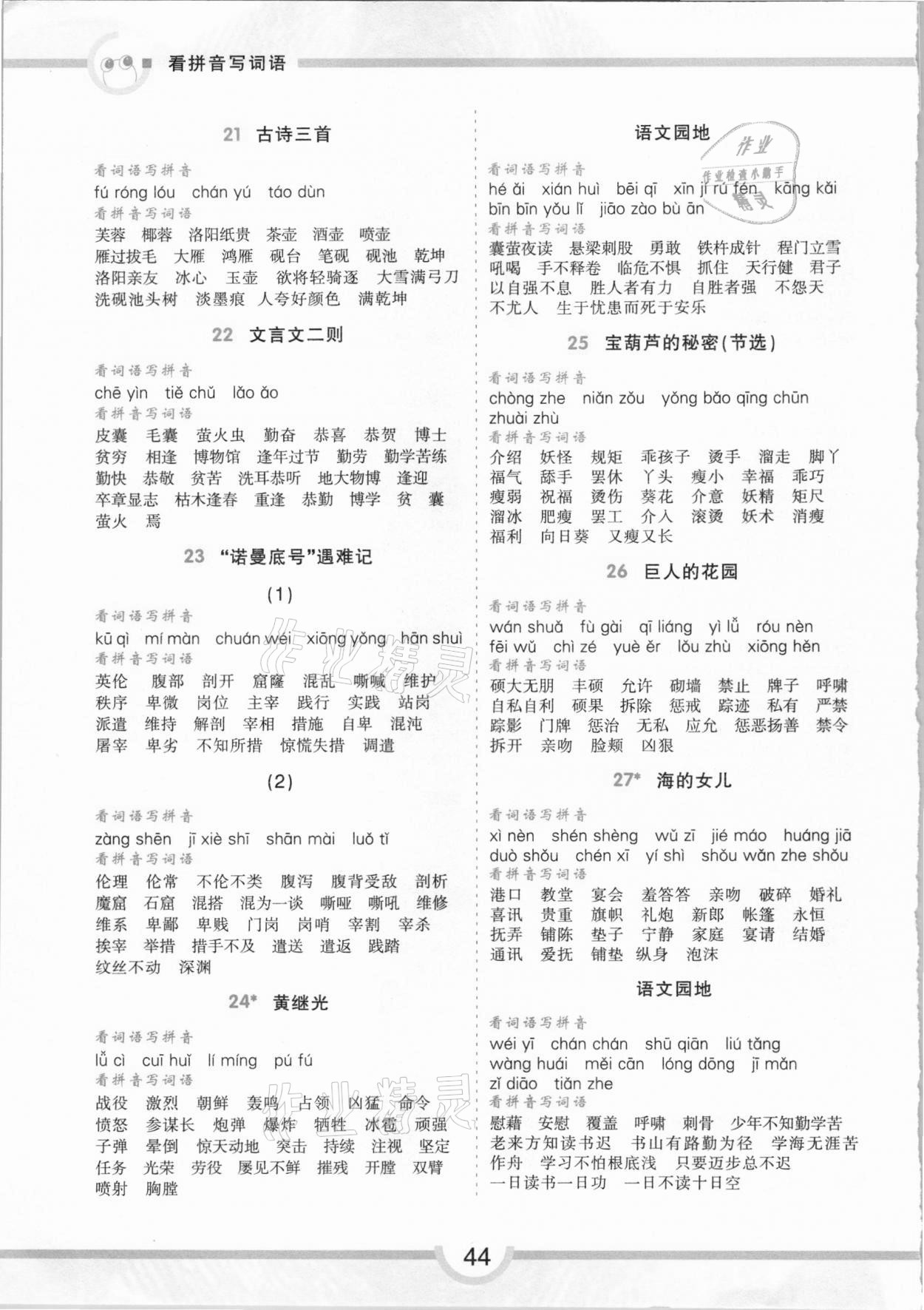 注:目前有些书本章节名称可能整理的还不是很完善,但都是按照顺序排列的,请同学们按照顺序仔细查找。练习册 2021年看拼音写词语同步专项练习四年级下册人教版 答案主要是用来给同学们做完题方便对答案用的,请勿直接抄袭。