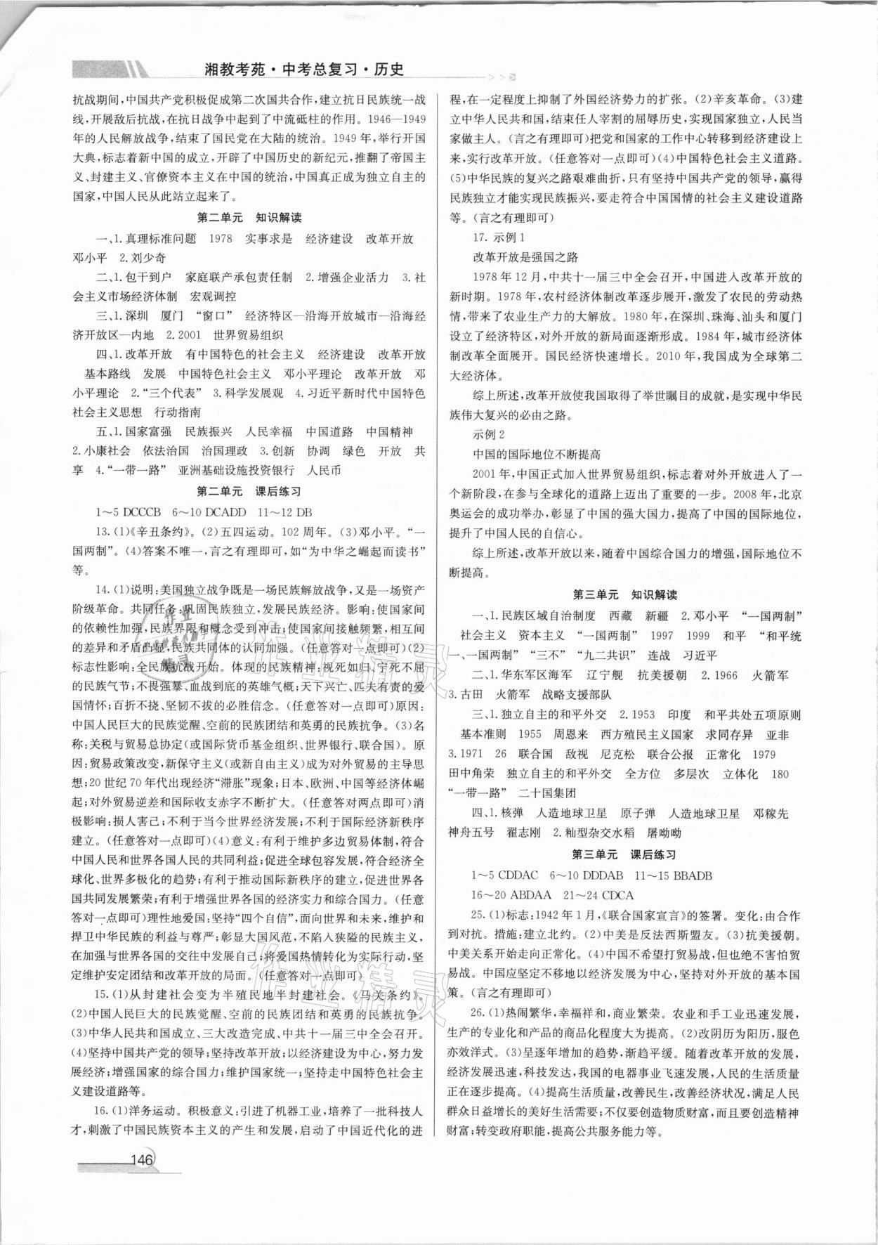 注:目前有些书本章节名称可能整理的还不是很完善,但都是按照顺序排列的,请同学们按照顺序仔细查找。练习册 2021年湘教考苑中考总复习历史湘西专版 答案主要是用来给同学们做完题方便对答案用的,请勿直接抄袭。