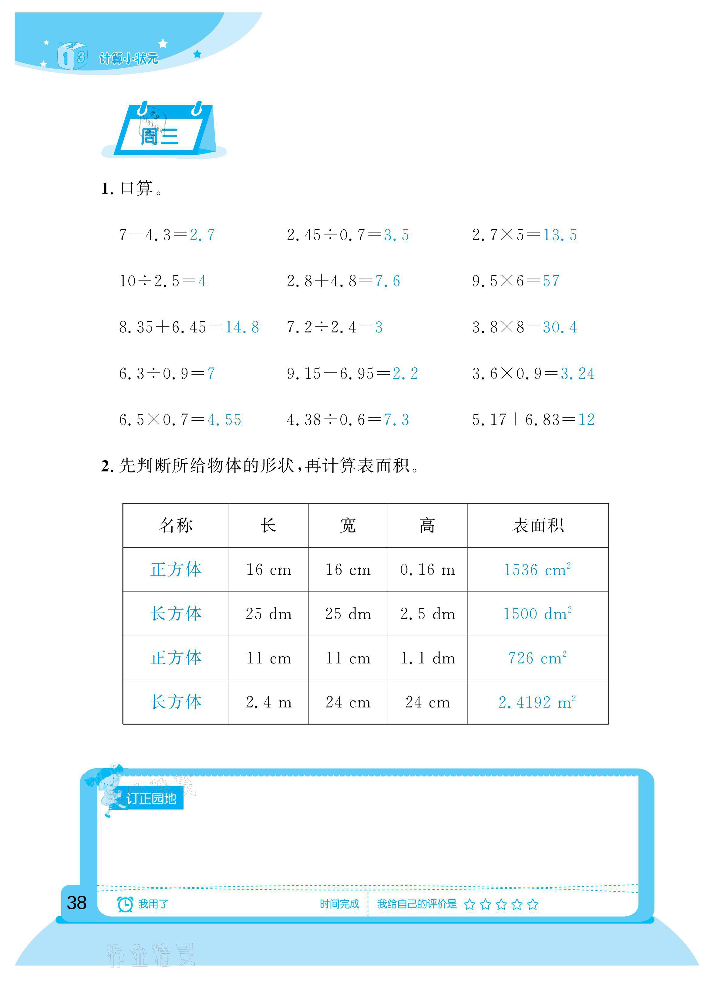 注:目前有些书本章节名称可能整理的还不是很完善,但都是按照顺序排列的,请同学们按照顺序仔细查找。练习册 2021年计算小状元五年级下册新疆文化出版社 答案主要是用来给同学们做完题方便对答案用的,请勿直接抄袭。