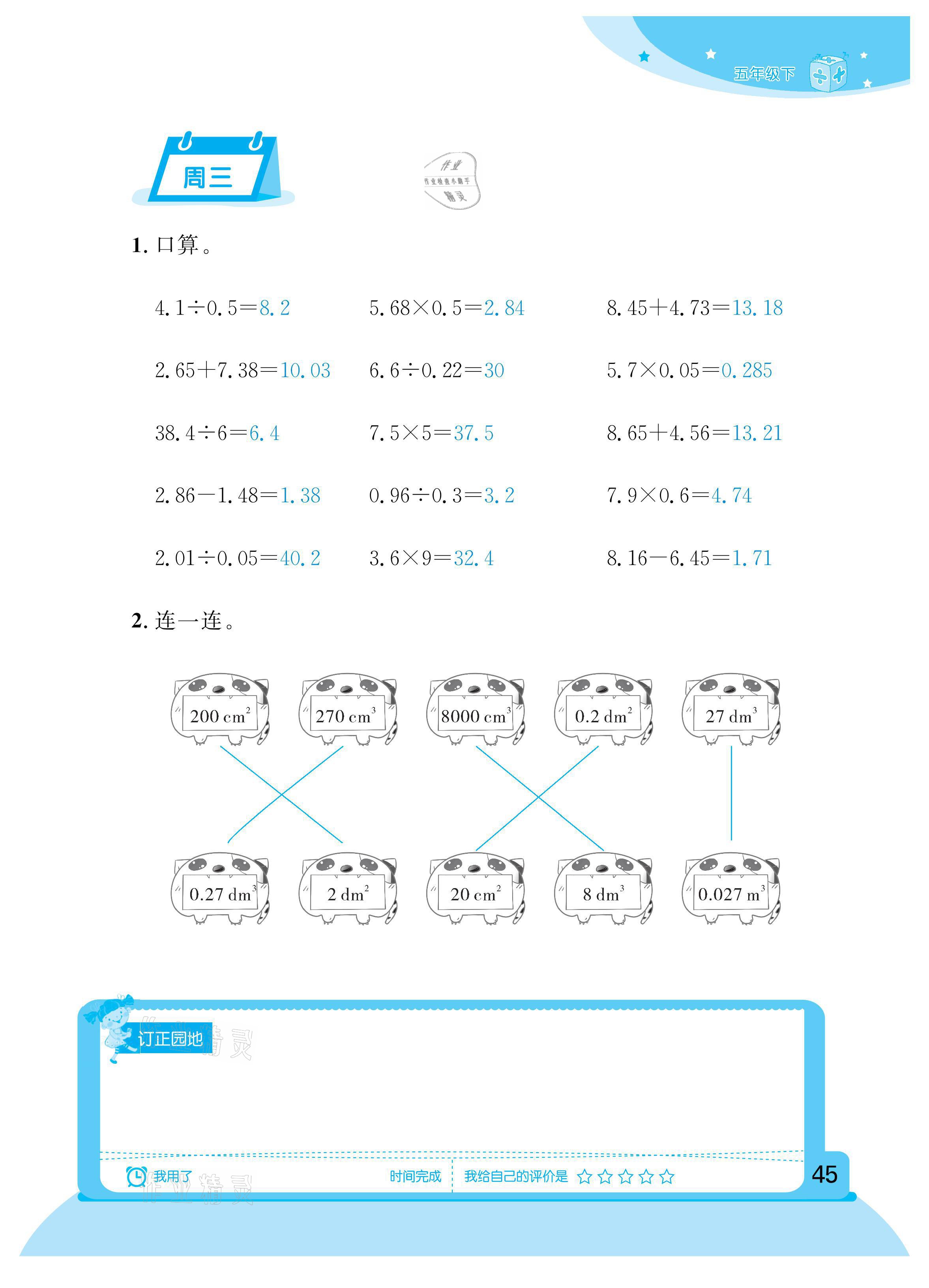 注:目前有些书本章节名称可能整理的还不是很完善,但都是按照顺序排列的,请同学们按照顺序仔细查找。练习册 2021年计算小状元五年级下册新疆文化出版社 答案主要是用来给同学们做完题方便对答案用的,请勿直接抄袭。