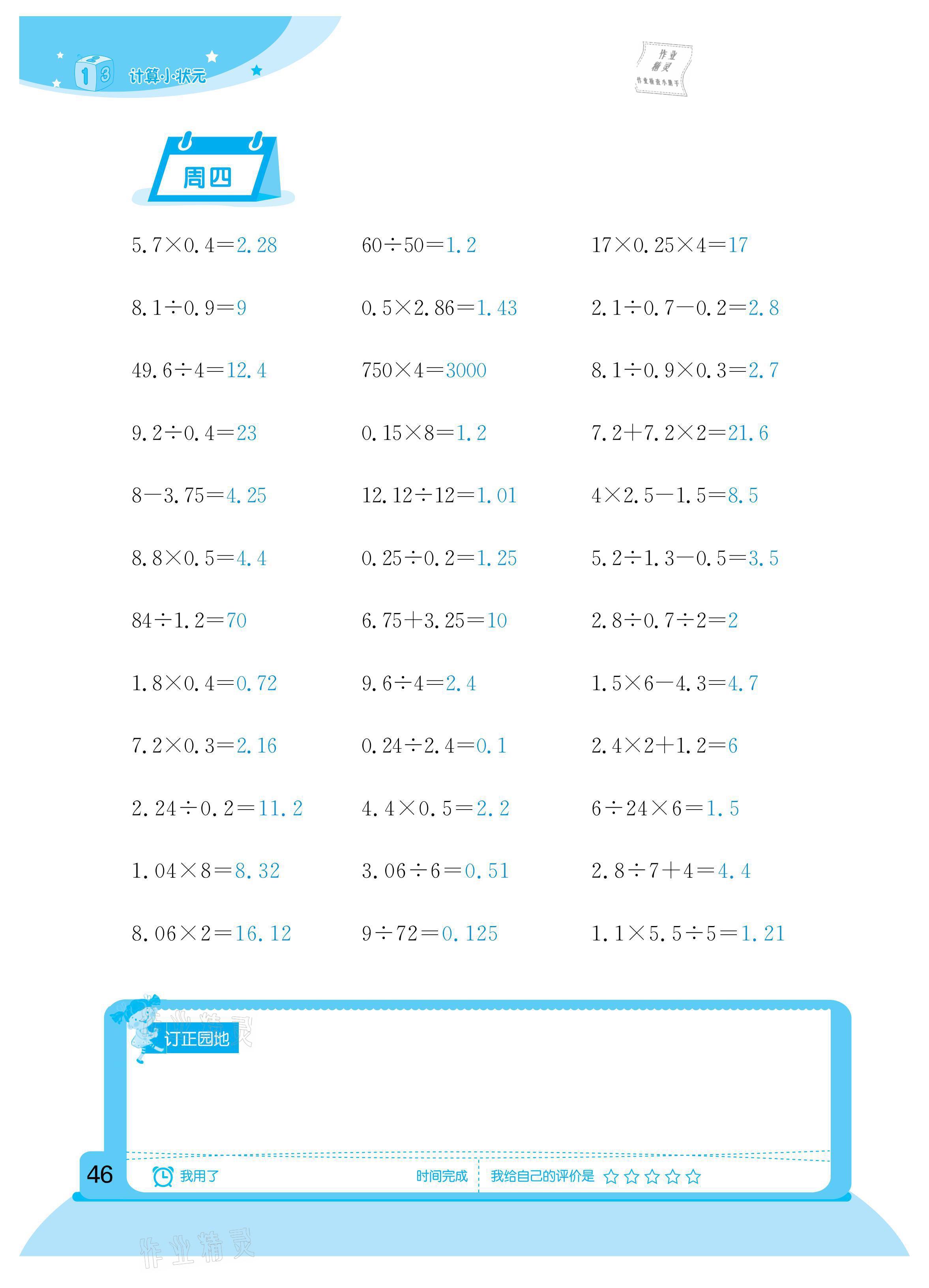 注:目前有些书本章节名称可能整理的还不是很完善,但都是按照顺序排列的,请同学们按照顺序仔细查找。练习册 2021年计算小状元五年级下册新疆文化出版社 答案主要是用来给同学们做完题方便对答案用的,请勿直接抄袭。