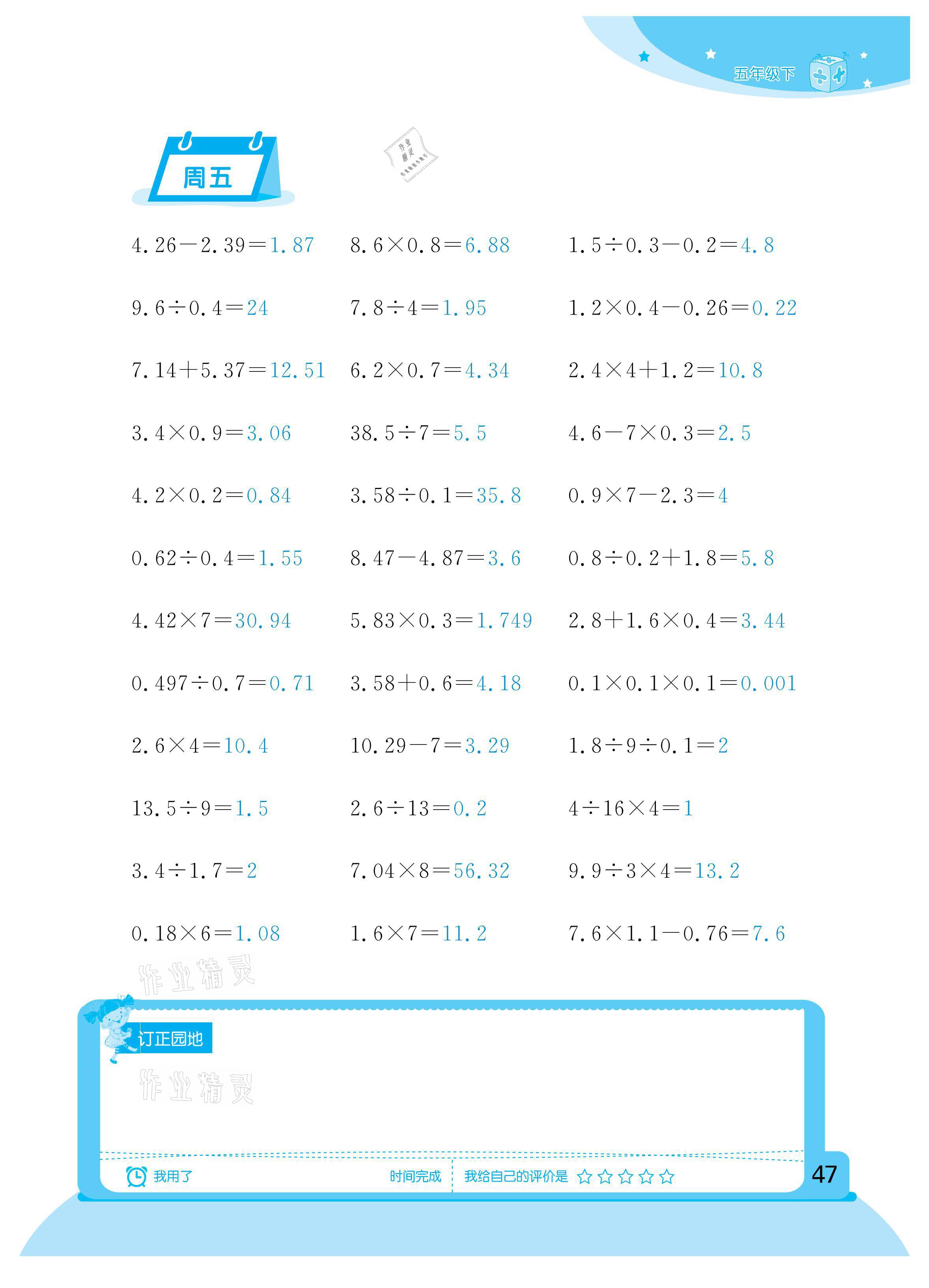 注:目前有些书本章节名称可能整理的还不是很完善,但都是按照顺序排列的,请同学们按照顺序仔细查找。练习册 2021年计算小状元五年级下册新疆文化出版社 答案主要是用来给同学们做完题方便对答案用的,请勿直接抄袭。