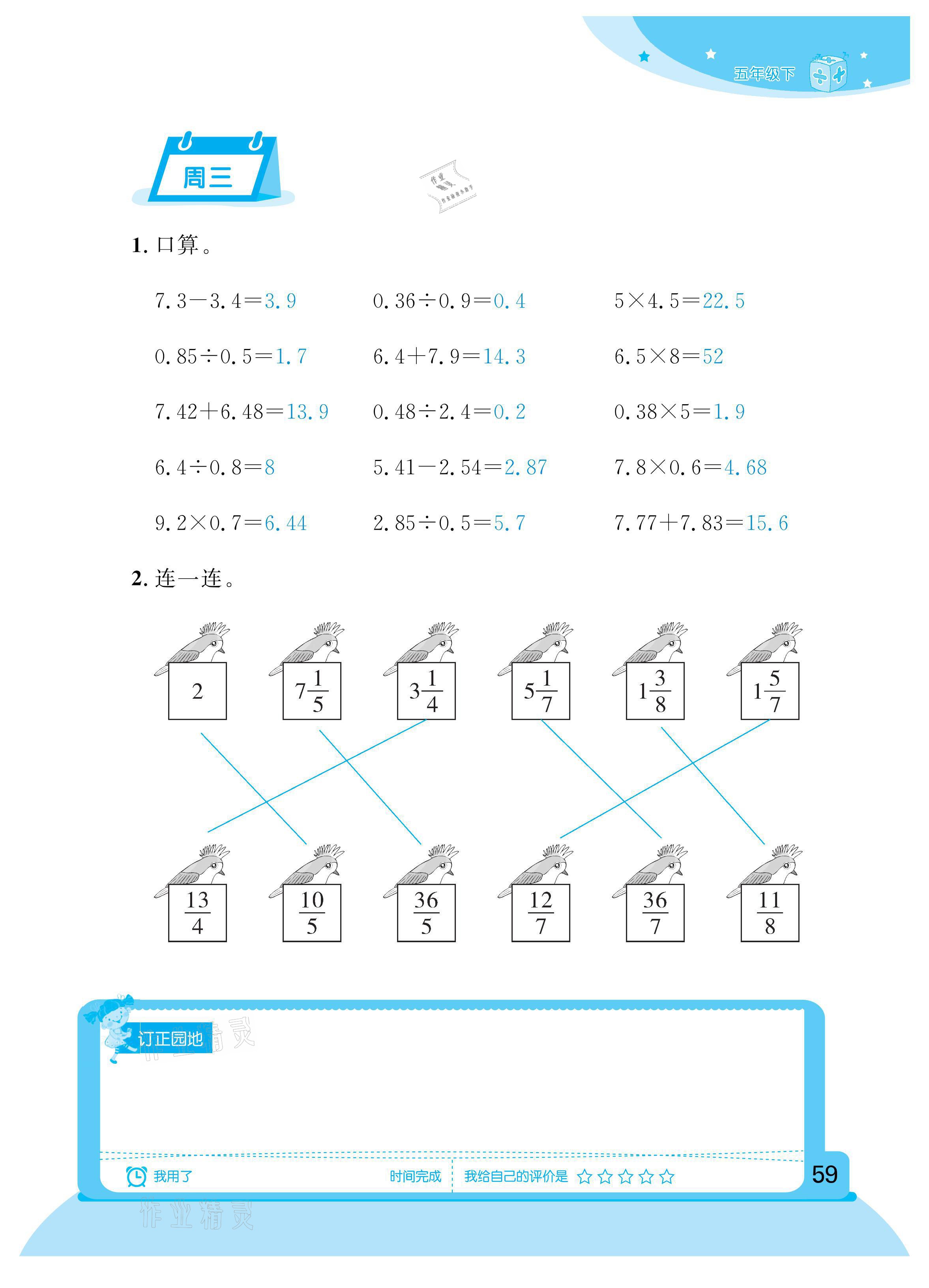 注:目前有些书本章节名称可能整理的还不是很完善,但都是按照顺序排列的,请同学们按照顺序仔细查找。练习册 2021年计算小状元五年级下册新疆文化出版社 答案主要是用来给同学们做完题方便对答案用的,请勿直接抄袭。